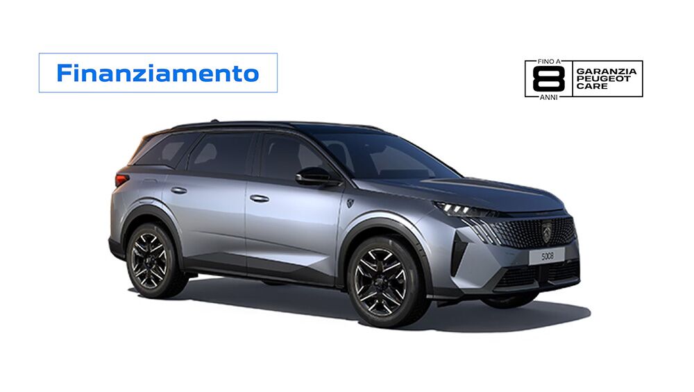 DETTAGLIO PROMOZIONE. Es di finanziamento I Move Promo su Nuova Peugeot 5008 Plug-in Hybrid 195 HP Allure: Prezzo Listino (IVA e messa su strada incluse, IPT, kit sicurezza + contributo PFU e bollo su dichiarazione di conformità esclusi) 48.199 €. Prezzo Promo 43.899 € con permuta e rottamazione. Anticipo 10.492 € – Importo Totale del Credito 33.407 €. L’offerta include il servizio Identicar 12 mesi di 271€. Importo Totale Dovuto 37.732,01 € composto da: Importo Totale del Credito, spese di istruttoria 395 €, Interessi 3.447,58 €, spese di incasso mensili 3,5 €, imposta sostitutiva sul contratto da addebitare sulla prima rata di 85,18 €. Tale importo è da restituirsi in n° 36 rate come segue: n° 35 rate da 299 € e una Rata Finale Residua (pari al Valore Garantito Futuro) 26.895,4 € incluse spese di incasso mensili di 3,5 €. Spese invio rendiconto periodico cartaceo: 0 € /anno. TAN (fisso) 3,75%, TAEG 4,87%. Solo in caso di restituzione e/o sostituzione del veicolo alla scadenza contrattualmente prevista, verrà addebitato un costo pari a 0,1 €/ km ove il veicolo abbia superato il chilometraggio massimo di 45.000 km. Offerta valida solo su clientela privata solo per contratti stipulati fino al 31 Dicembre 2025, non cumulabile con altre iniziative in corso. Offerta Stellantis Financial Services Italia S.p.A. soggetta ad approvazione. Documentazione precontrattuale bancaria/assicurativa in concessionaria e sul sito www.stellantis-financial-services.it (Sez. Trasparenza). Messaggio Pubblicitario con finalità promozionale.